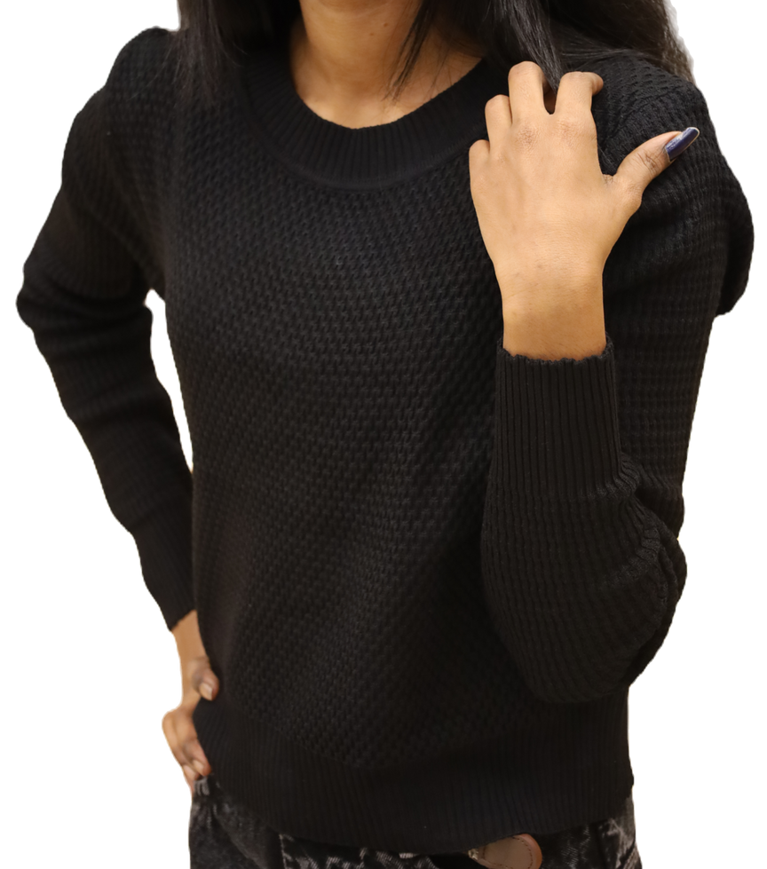 Update your wardrobe with this textured top, which is designed with full sleeves and a round neck.Sweatshirt has a round neck, long sleeves, closure, ribbed hem