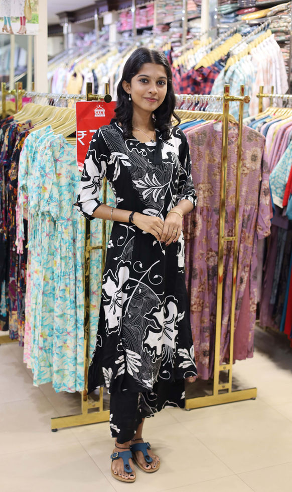 Discover the elegance and comfort of our Co-ordset at Branda Roshan. This premium quality ensemble features a sophisticated floral print on soft rayon fabric, ensuring you stay stylish and comfortable all day. The 3/4 sleeves and V neck model add a touch of grace, perfect for any occasion. Elevate your wardrobe with this versatile and chic set, designed to meet our high standards of quality and style.This Stunning Cordset comes with side slit.
