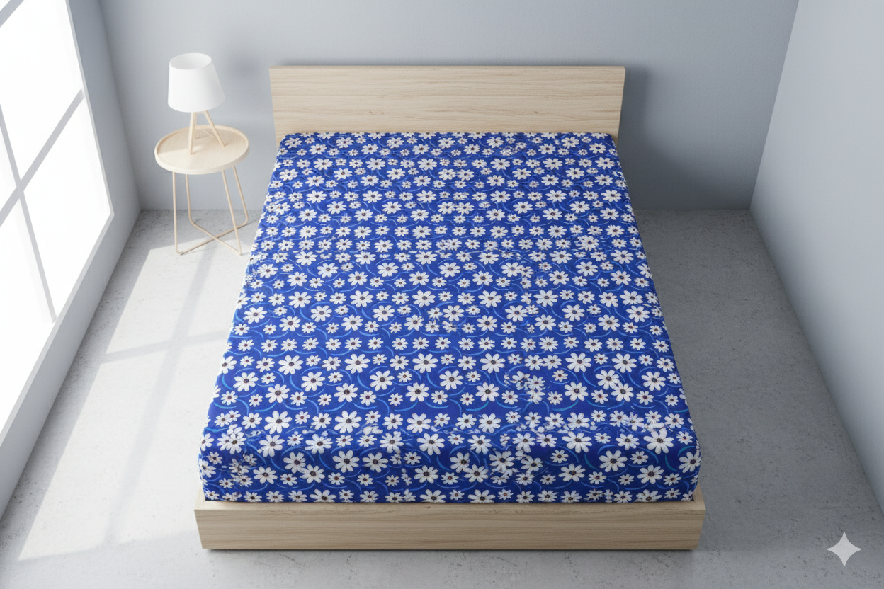 Add timeless elegance to your bedroom with this beautiful Blue cotton bedsheet, adorned with a fresh white floral print. Designed for family cots (90x100 inches), this bedsheet offers a perfect blend of comfort, durability, and aesthetic appeal. Made from soft, breathable 100% cotton, it's ideal for everyday use in any season.