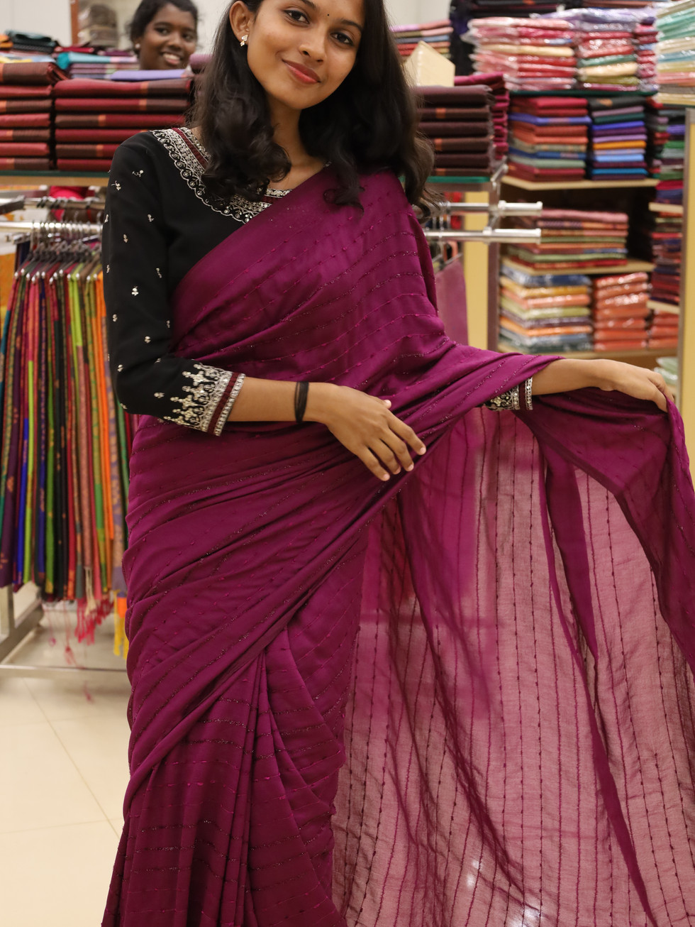 Trending Quality Vijithra fur Sarees for affordable price range (Grape wine)